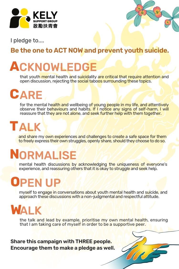 Exclusively for pledgers of #OneIsTooMany2023, you will receive a series of articles, tips and other resources created or written by mental health professionals and KELY youth volunteers.