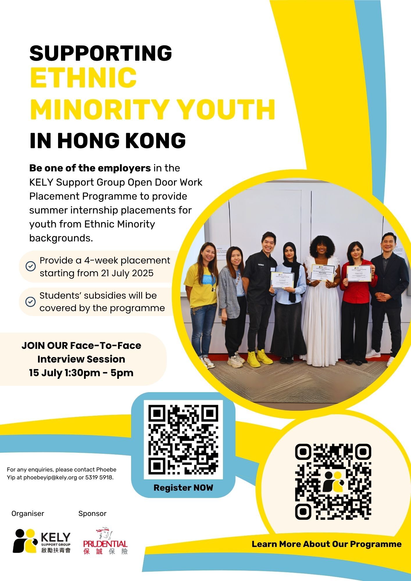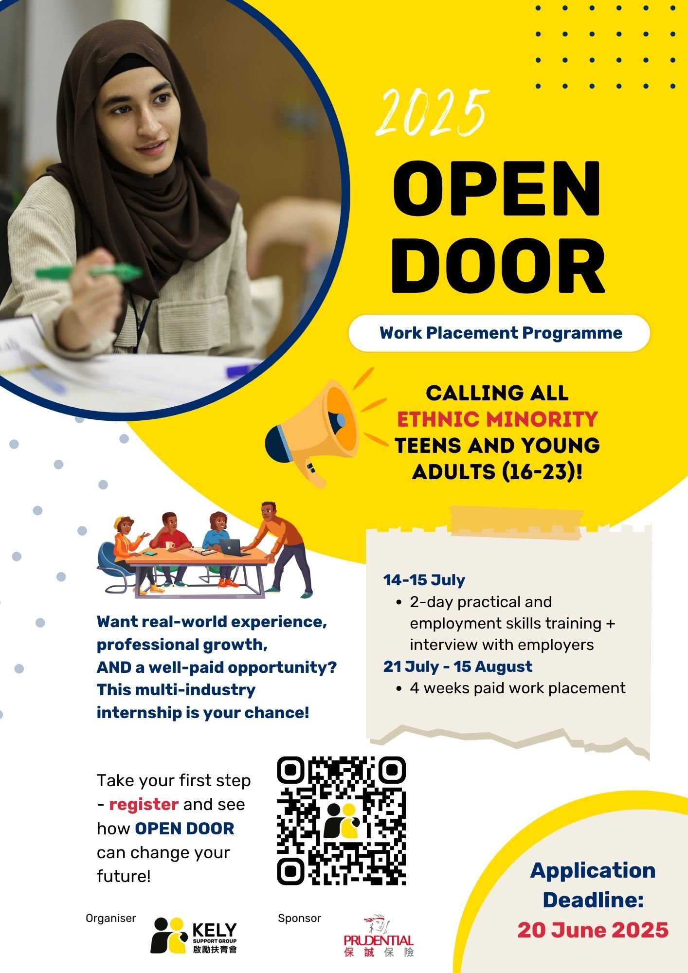 Proudly supported by Prudential Hong Kong Limited, the Open Door Work Placement Programme addresses the crucial need for career development opportunities among ethnic minority (EM) youths in Hong Kong.