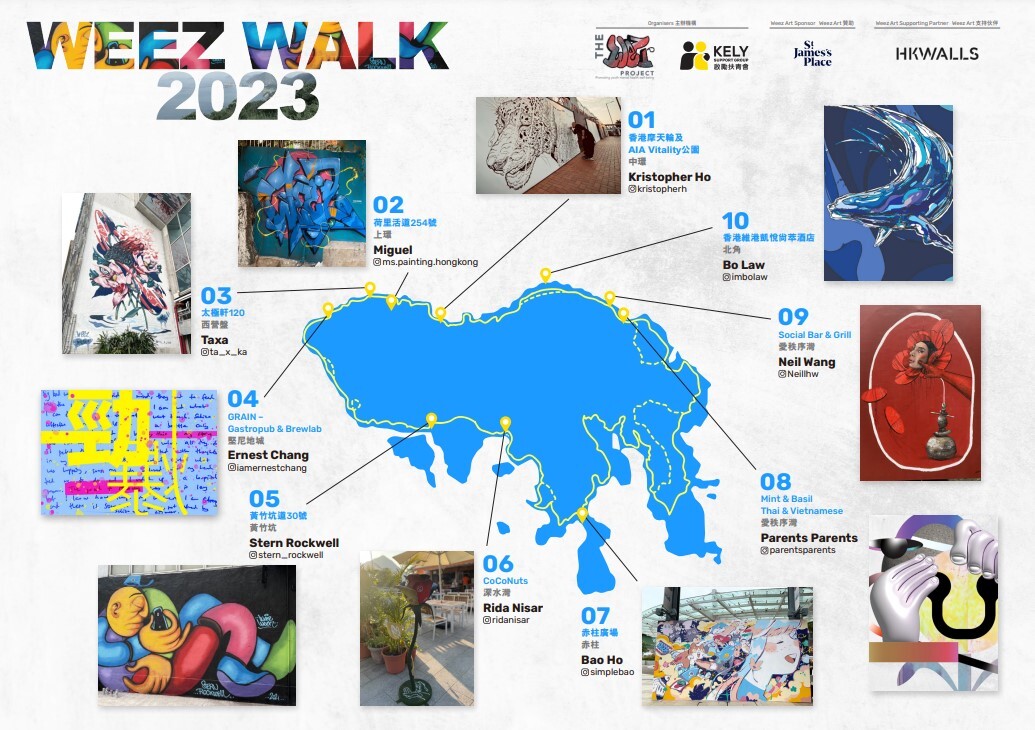 Weez Project 深信街頭藝術能成為宣揚精神健康的重要渠道之一,因此「Weez Walk 2023環島虛擬行」繼續與非牟利藝術組織 HKWALLS 及多名藝術家合作,以精神健康為題,創作逾10件藝術作品,讓參加者在步行時,亦可沿途發掘有關作品。