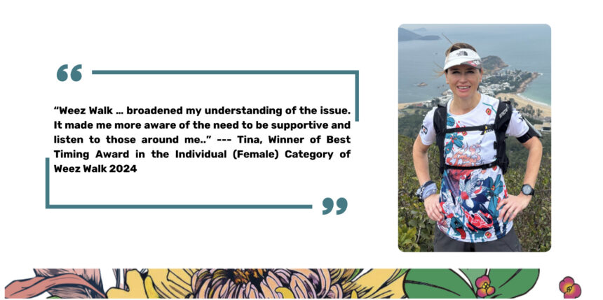 Weez Walk is an annual fundraising event organised by The Weez Project and KELY Support Group that aims to build an inclusive and integrated society and focuses on raising awareness of youth mental health and suicide prevention. It features a 60km trail walk around Hong Kong Island’s perimetre. Participants can choose to complete the course either in-one-go or by stages. Weez Walk 2025 was held between 18 January to 2 February 2025, and net proceeds of Weez Walk has gone to support KELY Support Group in the development and delivery of preventive mental health and suicide prevention programmes for youth.